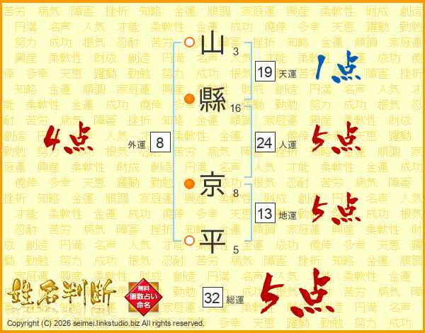 山縣京平さんの総運は32画の5点!