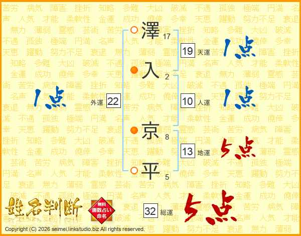澤入京平さんの総運は32画の5点!