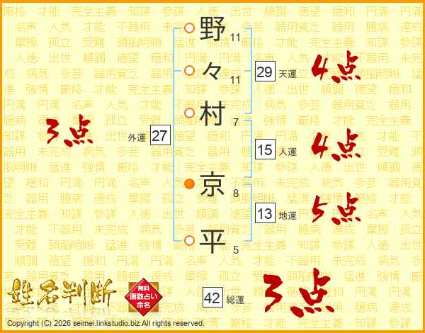 野(11画)々(11画)村(7画) 京(8画)平(5画)