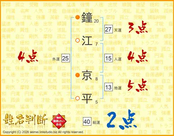 鐘江京平さんの総運は40画の2点!