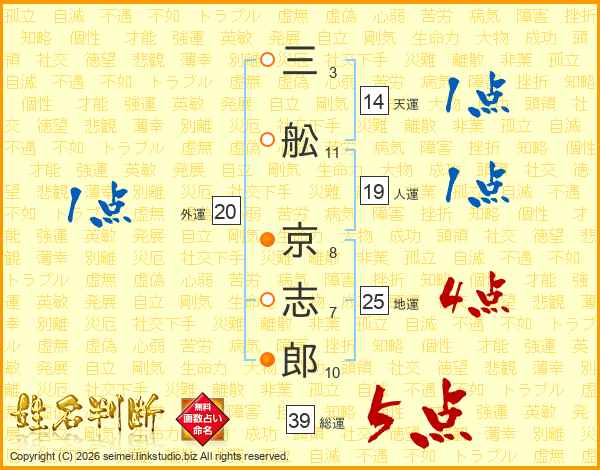 三舩京志郎さんの総運は39画の5点!