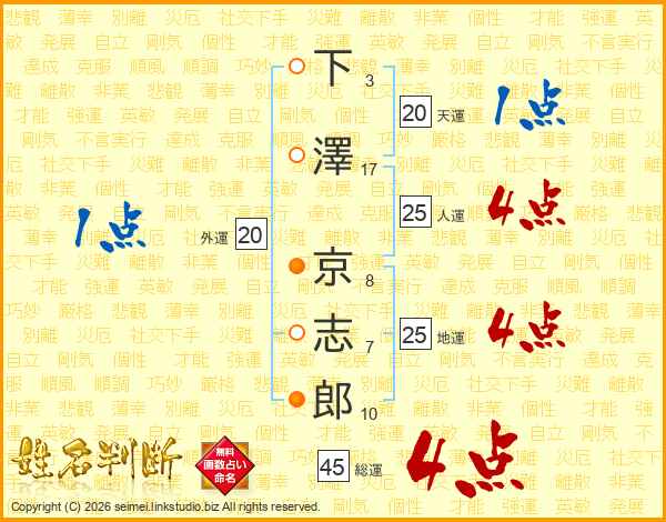 下(3画)澤(17画) 京(8画)志(7画)郎(10画)