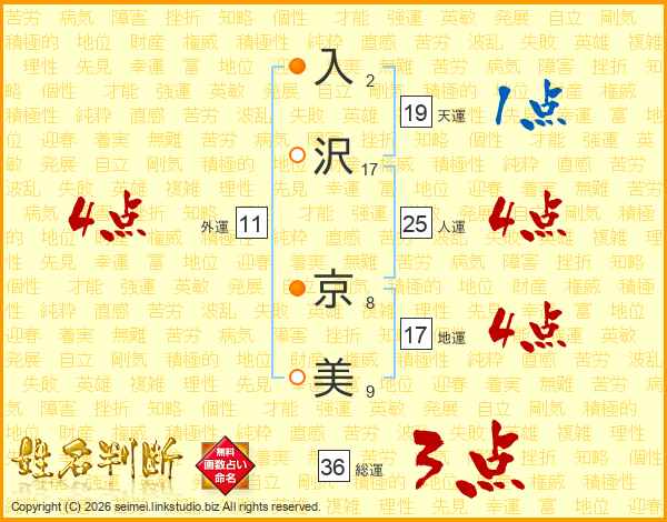 入沢京美さんの人運は25画の4点!