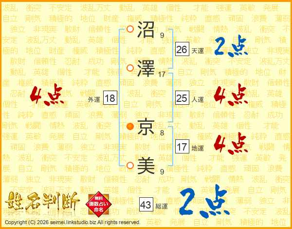 沼澤京美さんの外運は18画の4点!