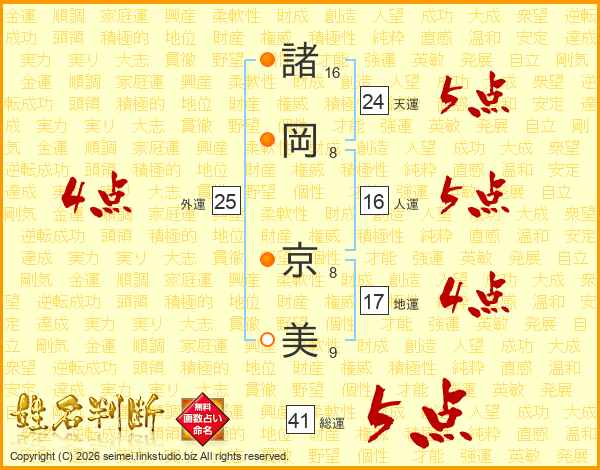 諸岡京美さんの総運は41画の5点!