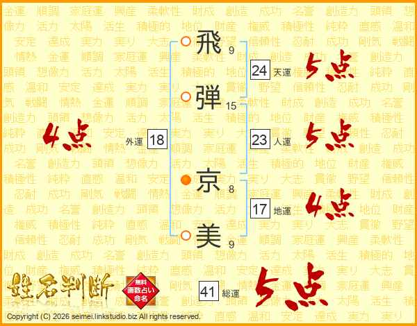 飛(9画)弾(15画) 京(8画)美(9画)