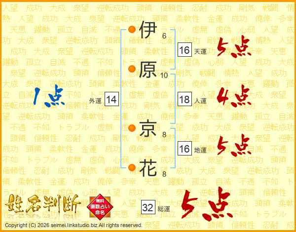 伊原京花さんの総運は32画の5点!