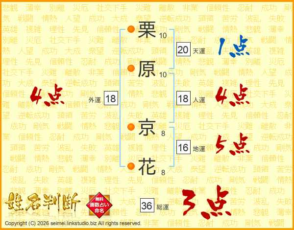 栗原京花さんの外運は18画の4点!