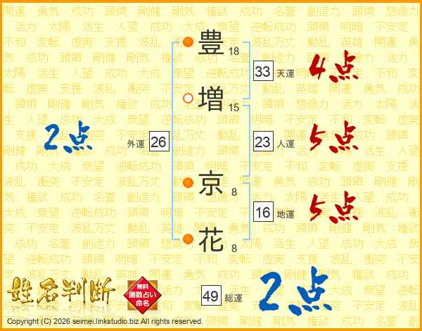 豊(18画)増(15画) 京(8画)花(8画)