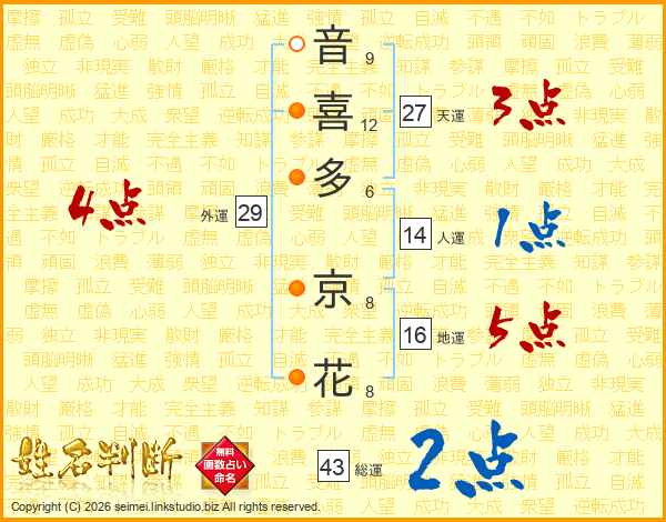 音喜多京花さんの外運は29画の4点!