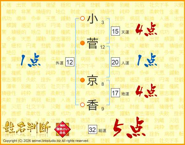小菅京香さんの総運は32画の5点!
