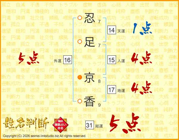 忍足京香さんの総運は31画の5点!