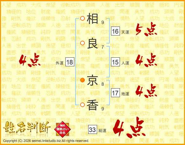相(9画)良(7画) 京(8画)香(9画)