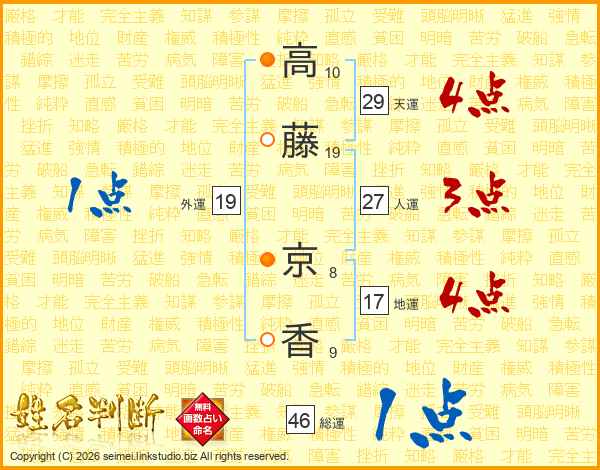 高(10画)藤(19画) 京(8画)香(9画)