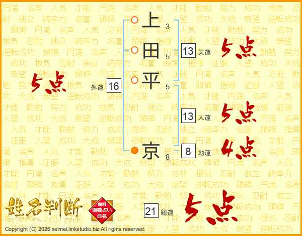 上田平京さんの総運は21画の5点!