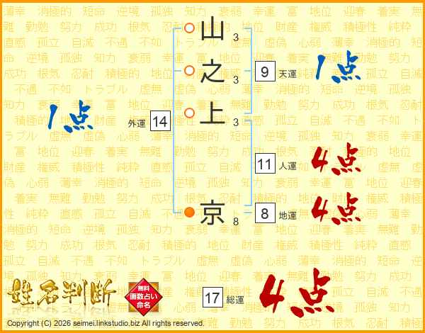山之上京さんの総運は17画の4点!