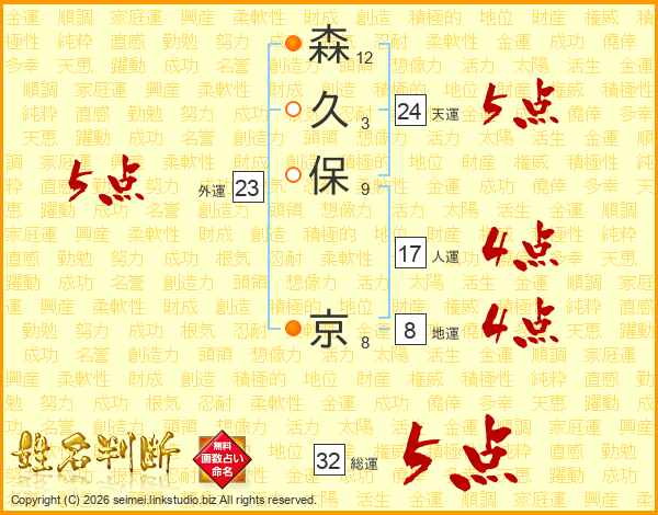 森久保京さんの総運は32画の5点!