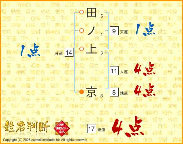 田ノ上京さんの総運は17画の4点!