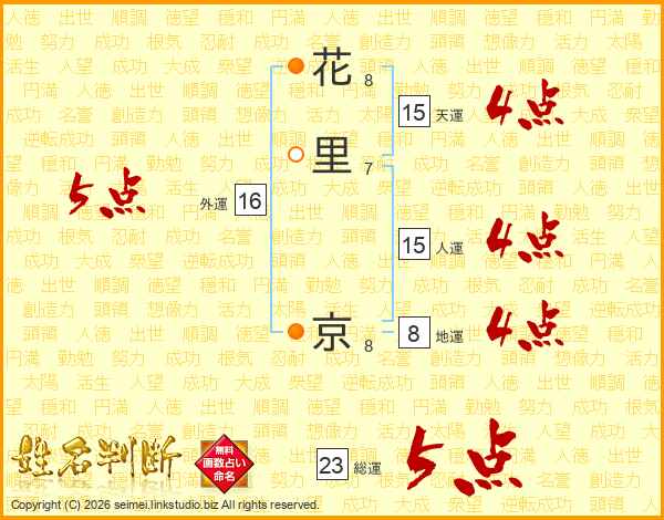 花里京さんの総運は23画の5点!