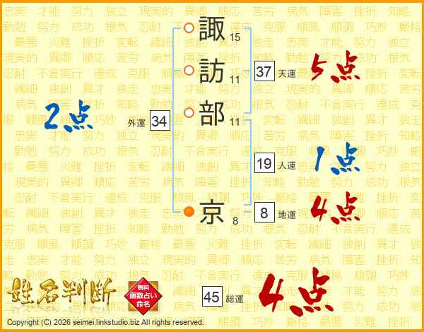 諏訪部京さんの総運は45画の4点!