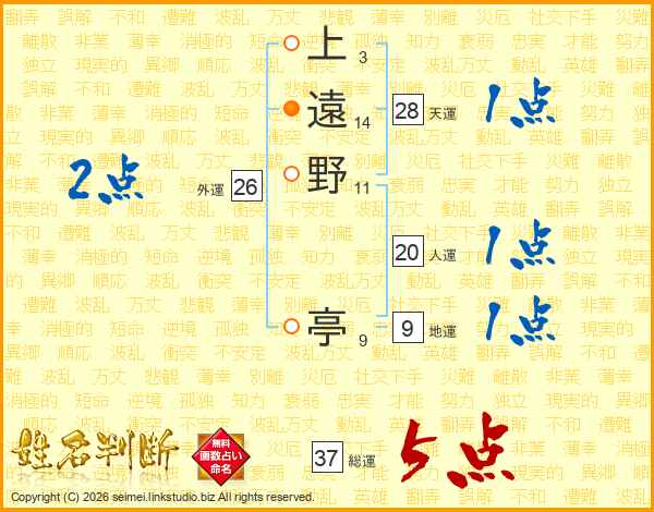 上遠野亭さんの総運は37画の5点!
