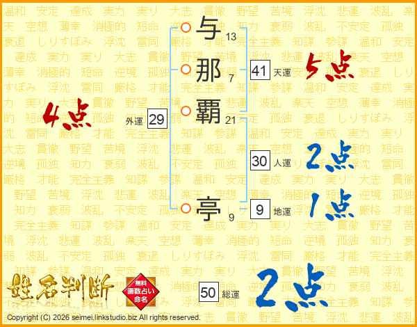 与那覇亭さんの天運は41画の5点!