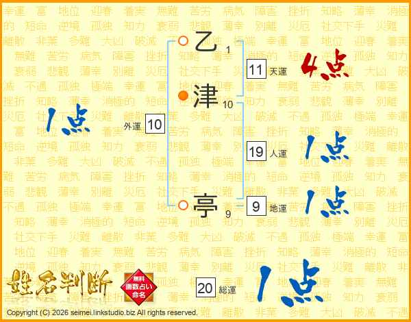 乙津亭さんの天運は11画の4点!