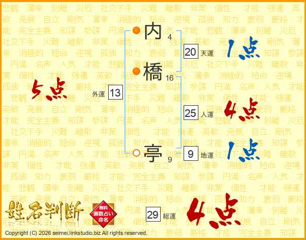 内橋亭さんの総運は29画の4点!