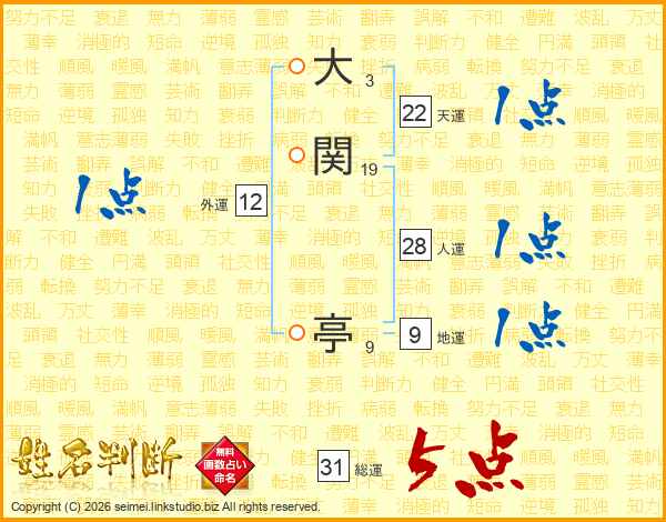 大関亭さんの総運は31画の5点!