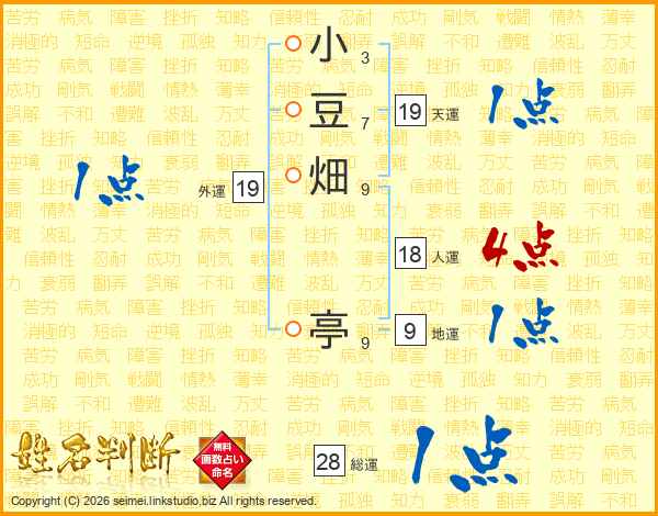 小(3画)豆(7画)畑(9画) 亭(9画)