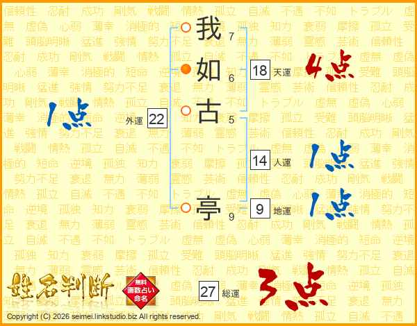 我如古亭さんの天運は18画の4点!