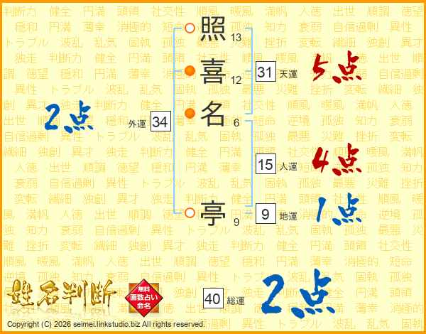 照喜名亭さんの天運は31画の5点!