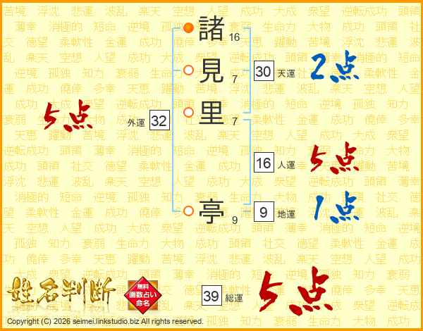 諸見里亭さんの総運は39画の5点!