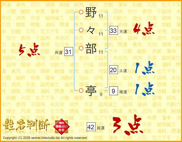 野々部亭さんの天運は33画の4点!