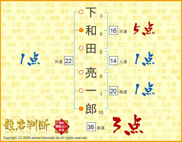 下和田亮一郎さんの総運は36画の3点!