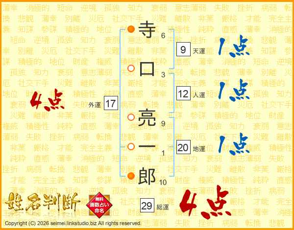 寺口亮一郎さんの総運は29画の4点!
