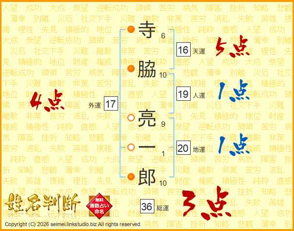 寺脇亮一郎さんの総運は36画の3点!
