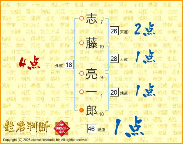志藤亮一郎さんの総運は46画の1点!