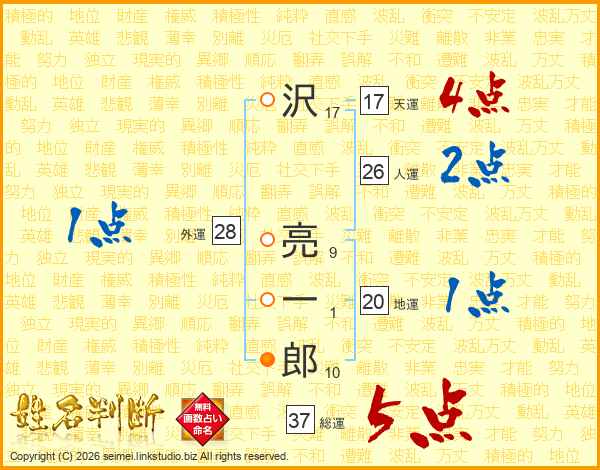 沢亮一郎さんの総運は37画の5点!