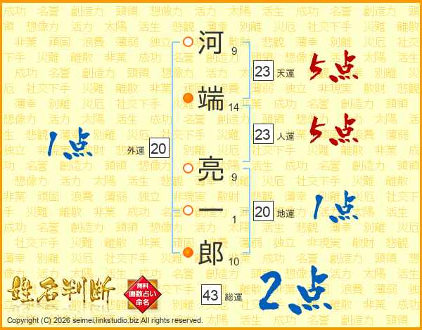 河端亮一郎さんの人運は23画の5点!