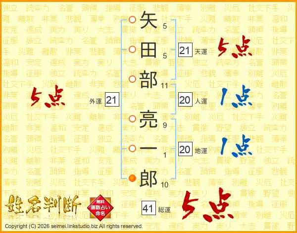 矢田部亮一郎さんの総運は41画の5点!