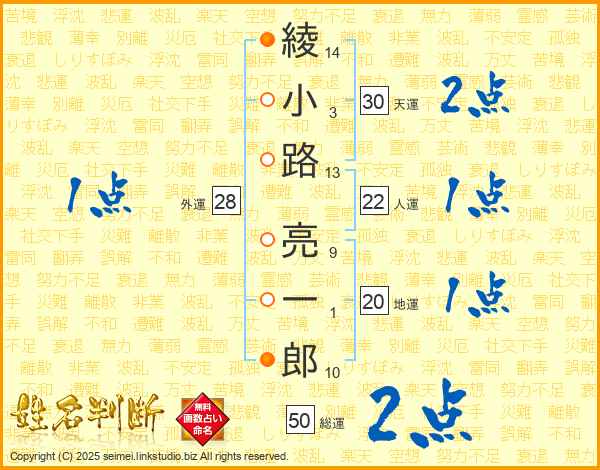 綾小路亮一郎さんの総運は50画の2点!