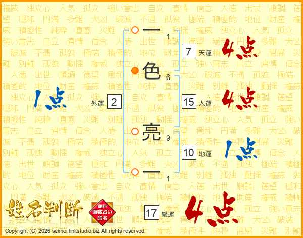 一色亮一さんの総運は17画の4点!