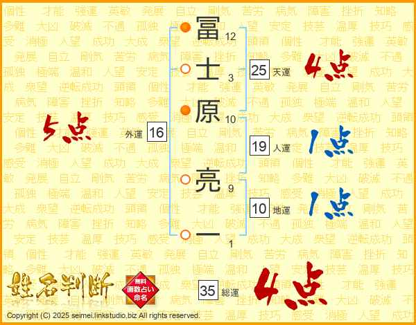 冨(12画)士(3画)原(10画) 亮(9画)一(1画)