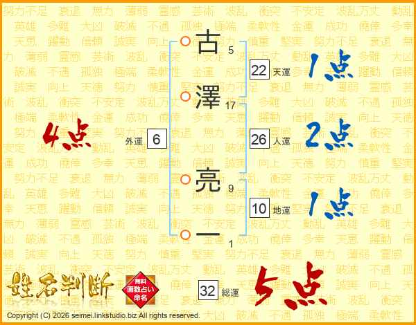 古澤亮一さんの総運は32画の5点!