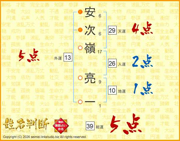 安次嶺亮一さんの総運は39画の5点!