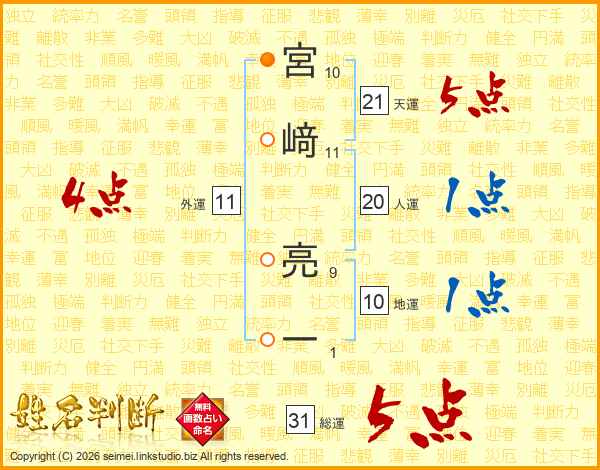 宮﨑亮一さんの総運は31画の5点!