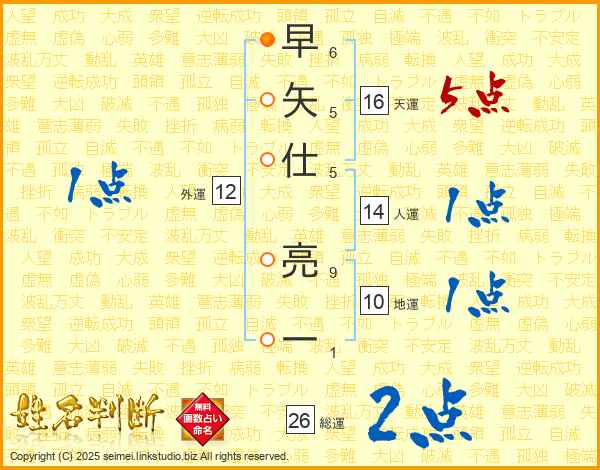 早(6画)矢(5画)仕(5画) 亮(9画)一(1画)