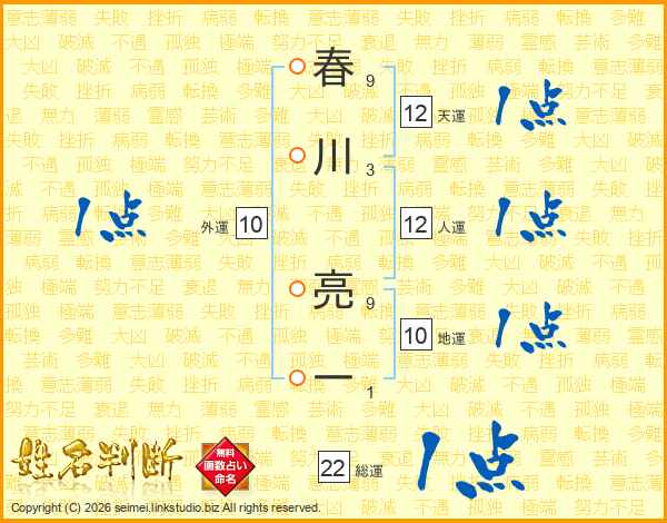 春川亮一さんの総運は22画の1点!