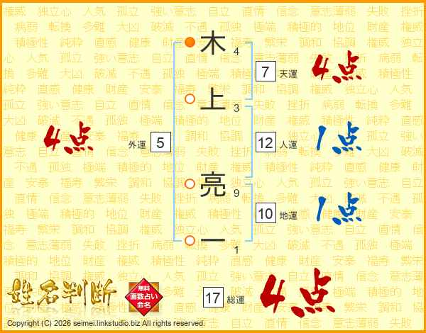 木上亮一さんの総運は17画の4点!